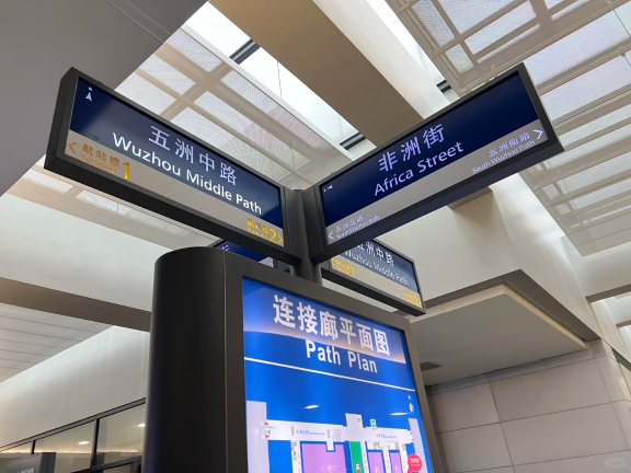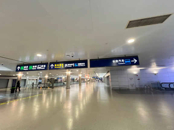 From the Pudong International Airport arrivals hall, walk towards Terminal 2 (Direction of T2). It takes about 5-8 minutes on foot. You will reach a T-intersection of Wuzhou Middle Path and Africa Street (Picture 1). Look for the signs "Coach" (Picture 2-3).